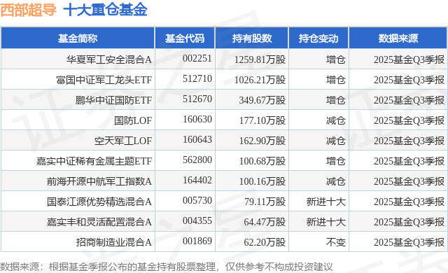 重仓西部超导的前十大公募基金请见下表: