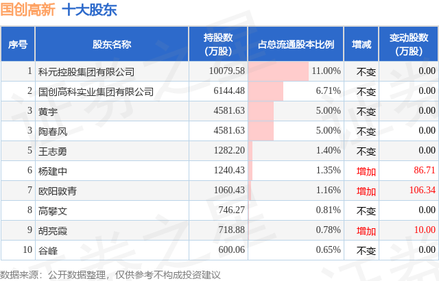 根据国创高新2025年三季报公布的十大股东详情如下: