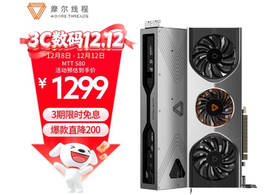 当年11月,摩尔线程在其秋季发布会上,公布了首张国产游戏显卡MTT S80。标志着消费级GPU市场出现了新玩家。