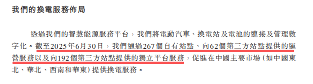 截至2025年6月30日,奥动新能源通过267个自有站点、向62个第三方站点提供的运营服务以及向192个第三方站点提供的独立平台服务,提供换电服务。