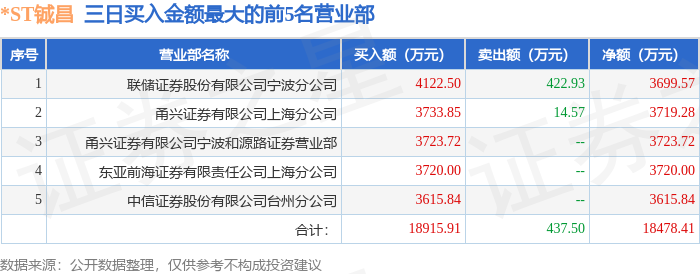 证券之星消息,沪深交易所2025年12月18日公布的交易公开信息显示,*ST铖昌(001270)因连续三个交易日内,涨幅偏离值累计达到12%的ST证券、*ST证券和未完成股改证券登上龙虎榜。此次是近5个交易日内第2次上榜。