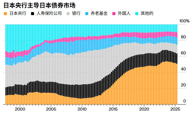 日本央行长期以来一直是日本国债的主要买家。直到最近,日本一直处于通货紧缩周期中,自上世纪90年代以来,这一周期被称为“失去的数十年”。购买日本国债,使政府能够发行更多债务并增加支出,一直是日本央行刺激经济战略的一部分。