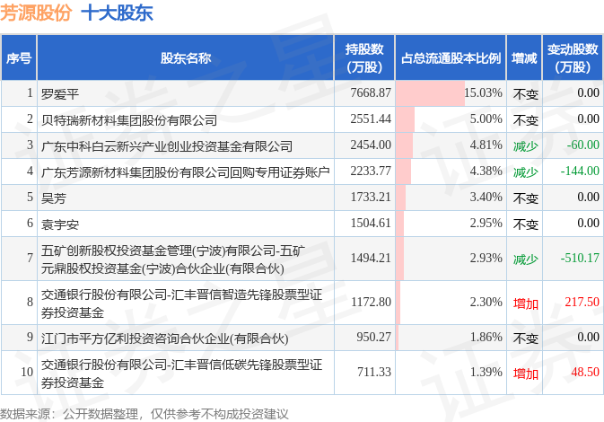 根据芳源股份2025年三季报公布的十大股东详情如下: