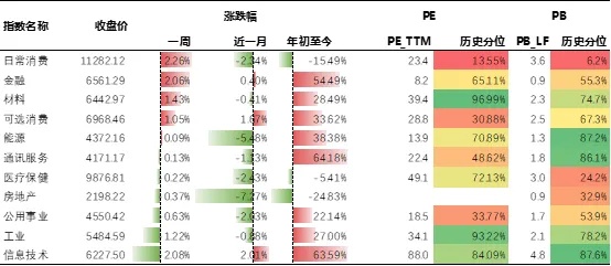上周A股万得一级行业呈现消费与金融领涨、科技与工业承压的分化格局。日常消费(+2.26%)、金融(+2.06%)涨幅居前,受益于政策预期与高股息吸引力;信息技术(-2.08%)、工业(-1.22%)回调,受估值调整与海外科技股联动影响。