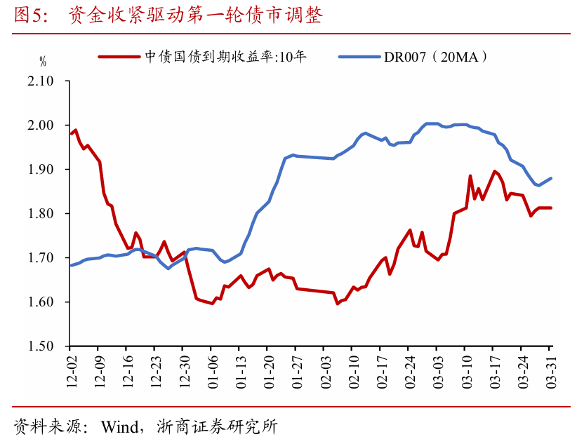 本轮债市调整呈现出超长期国债领跌的结构性特征。11月以来,债市持续呈现调整行情,以12月4日阶段性高点衡量,10年、30年国债收益率分别较11月低点累计上行7.74BP、13.85BP。此后市场行情出现较为鲜明的期限结构分化,30年国债修复后再度转跌,并于12月16日创下2.28%的阶段性新高,10年国债则以修复性行情为主,12月15日调整幅度显著低于30年国债。