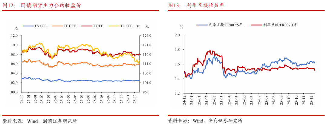 3、跨年行情会继续缺席吗:近年来债市多有跨年行情的日历效应特征,表现为公历年前后债市多走出上涨行情,至春节前行情则相对有限。我们认为年内第三轮债市调整或仍未结束,但待2026年1-2月后,若出现货币宽松预期升温等利好因子,或存在跨年行情延后开启的可能性。