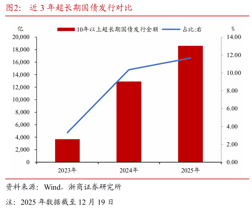 超长期国债调整背后或反映出配置与交易力量的双双走弱。一方面,近年来我国10年以上超长期国债供给显著放量,截至12月19日,2025年10年以上国债发行规模已达1.86万亿,占国债发行总量的比重达到11.66%。逐年抬升的超长期国债发行规模对银行等传统配置机构配置能力带来一定挑战,叠加2026年财政前置发力预期,使其在久期与利润等多重因素考核下或增大超长期国债抛售力度。另一方面,在财政扩张的全球宏观背景下,美国、日本等国家30年国债面临相对较大的抛售压力,或在一定程度上影响超长期国债持有者投资情绪。加之近期国内债市行情相对偏弱,基金等交易型机构或也存在较强减持动机,从而形成了30年国债收益率逢低减持的阶段性市场行情,此前数年债牛行情下所积累的投机情绪或逐步退潮。