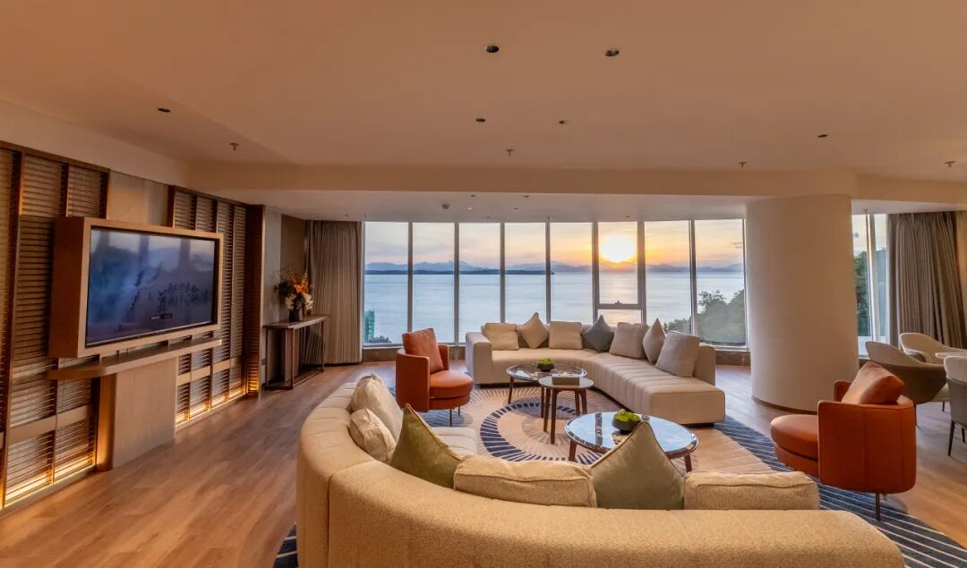 客房及套房内部,摒弃浮华的装饰,注重空间的流动性与视觉的穿透感,大幅落地窗将阳光、海风与绿意悉数纳入室内。
