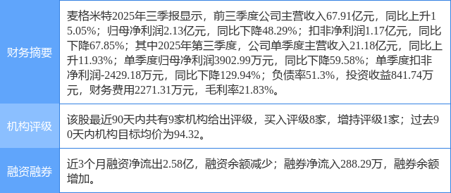 2025年10月31日,东吴证券研究员曾朵红,谢哲栋,许钧赫发布了对麦格米特的研报《2025年三季报点评:业绩不及市场预期,大力布局AI电源业务》,该研报对麦格米特给出“买入”评级。证券之星数据中心根据近三年发布的研报数据计算,该研报作者对此股的盈利预测准确度为56.14%。
