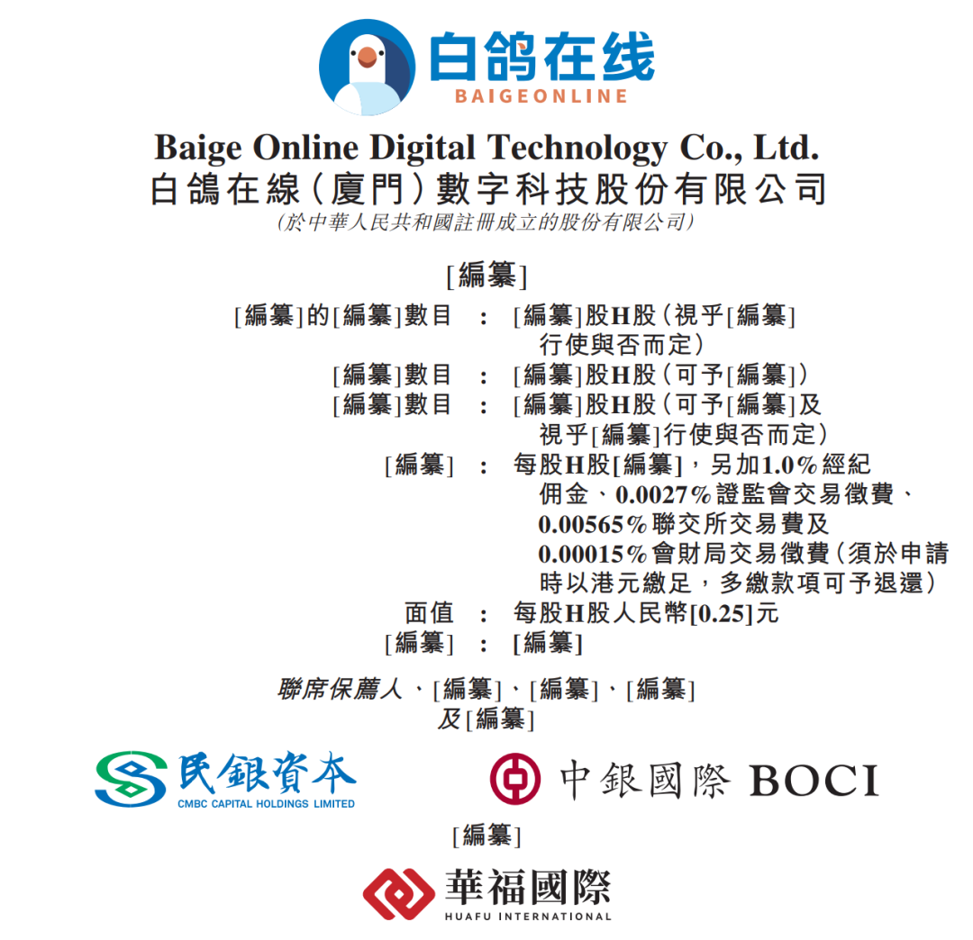 据港交所12月23日披露,白鸽在线(厦门)数字科技股份有限公司通过港交所主板上市聆讯,民银资本、中银国际为联席保荐人。