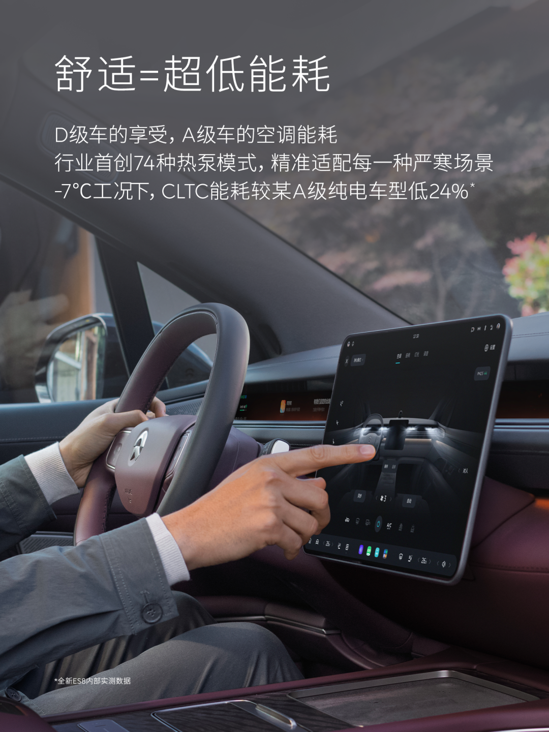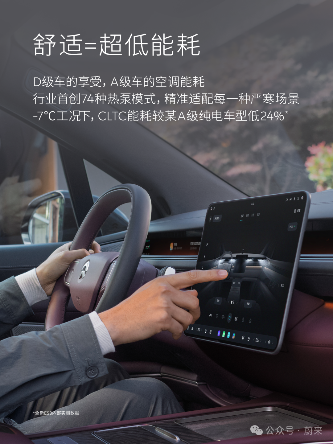 原来冬天的舒适和超低能耗真的可以兼得全新ES8开启体面过冬模式:✅D级车的享受,A级车的空调能耗✅一天不到一度电的热饮自由✅3分钟满电优雅出发......这个冬天,彻底告别电量焦虑和补能焦虑#蔚来 #冬天更知蔚来好 #蔚来全新ES8 点击即刻预约试驾蔚来全新ES8 文章原文