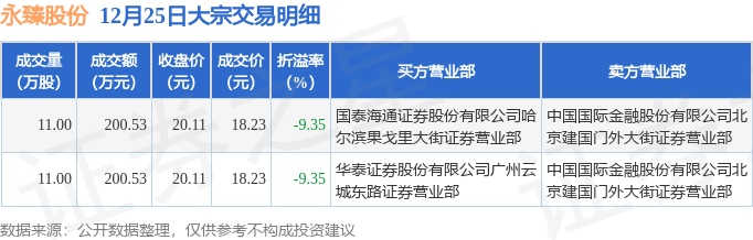 证券之星消息,12月25日永臻股份发生大宗交易,交易数据如下: