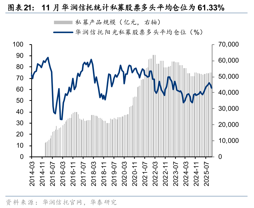华润信托统计数据显示,截至11月30日,私募股票仓位指数达61.33%,较上月环比有所回落。