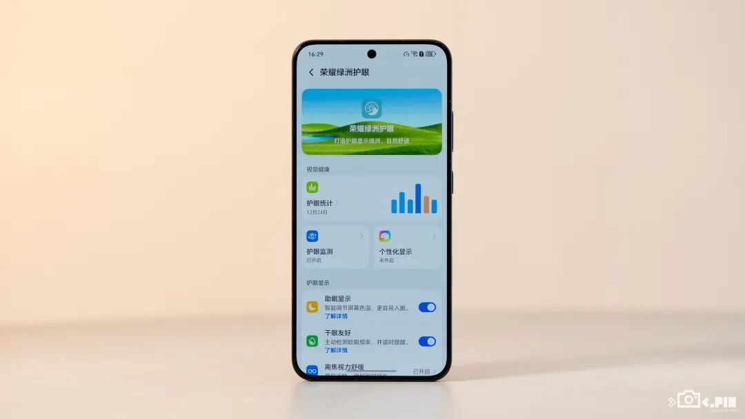 而更高的 PWM 调光频率相对来讲也就更加护眼,再结合荣耀手机里面成吨的护眼功能,假如你是个用眼敏感人群,那你还真得看看荣耀这牌子,邪修手机屏幕就是好啊。。。