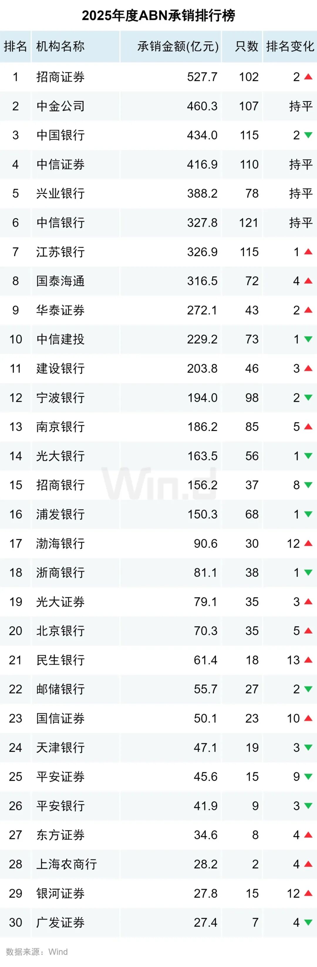 ABN市场发行机构排行榜单