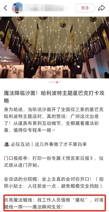 再比如前面提到的广州沙面店,除了复原场景外,还在互动上花足心思,魔药课曼德拉草实验、魔杖轻点篝火与蜡烛、魔法日报拍照机等环节,让“哈迷”戏称“麻瓜终于过足巫师瘾”。