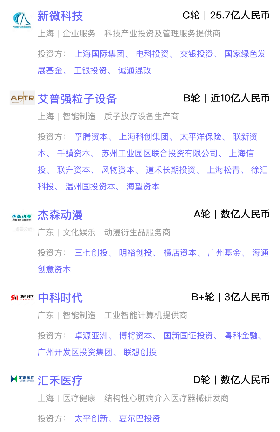 其次是智能制造行业,已披露融资总额为13.50亿人民币。 其中质子放疗设备生产商“艾普强粒子设备”完成近10亿人民币B轮融资。