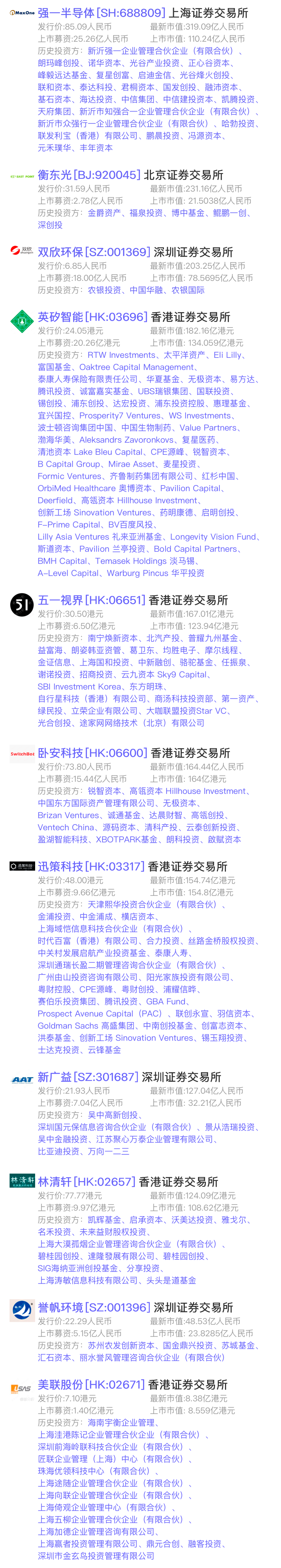 11家上市公司中,均曾获VC/PE或CVC投资,其中“强一半导体”曾获基石资本、中信建投资本、国发创投投资;“衡东光”曾获深创投、鲲鹏一创、博中基金投资;“双欣环保”曾获农银国际、中国华融、农银投资投资。