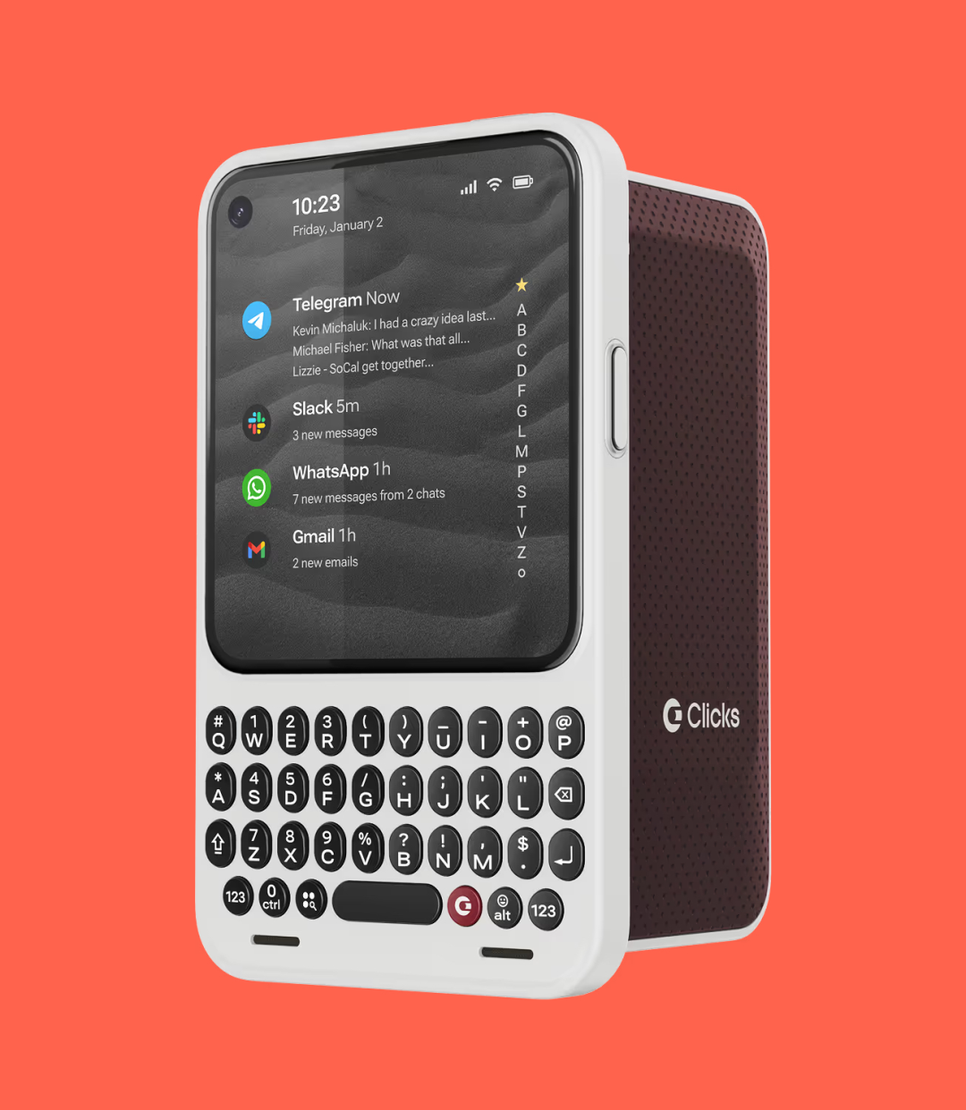 讲完了键盘 + 背夹电池,接下来才是真正的重头戏,一个在今天的手机市场上既前卫又复古的新产品:Clicks Communicator。