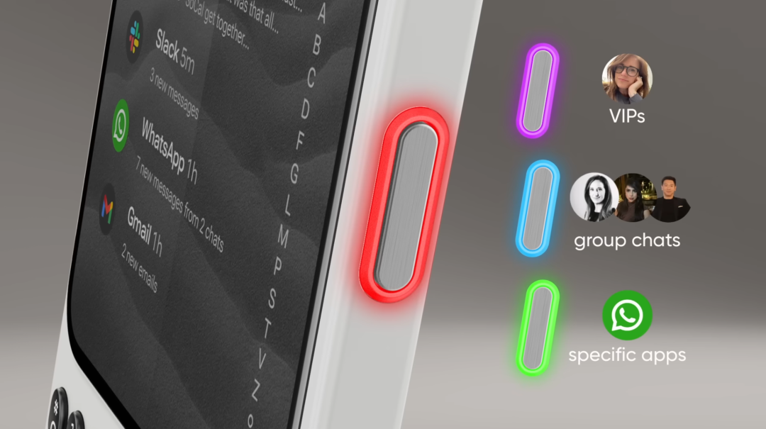比如 Communicator 机身右侧有一枚“闪念胶囊”键,用户可以自行设置成录音、语言输入或者转写等等功能。这颗按键周围设置了 LED 通知灯,可以根据不同类型的通知发光提示: