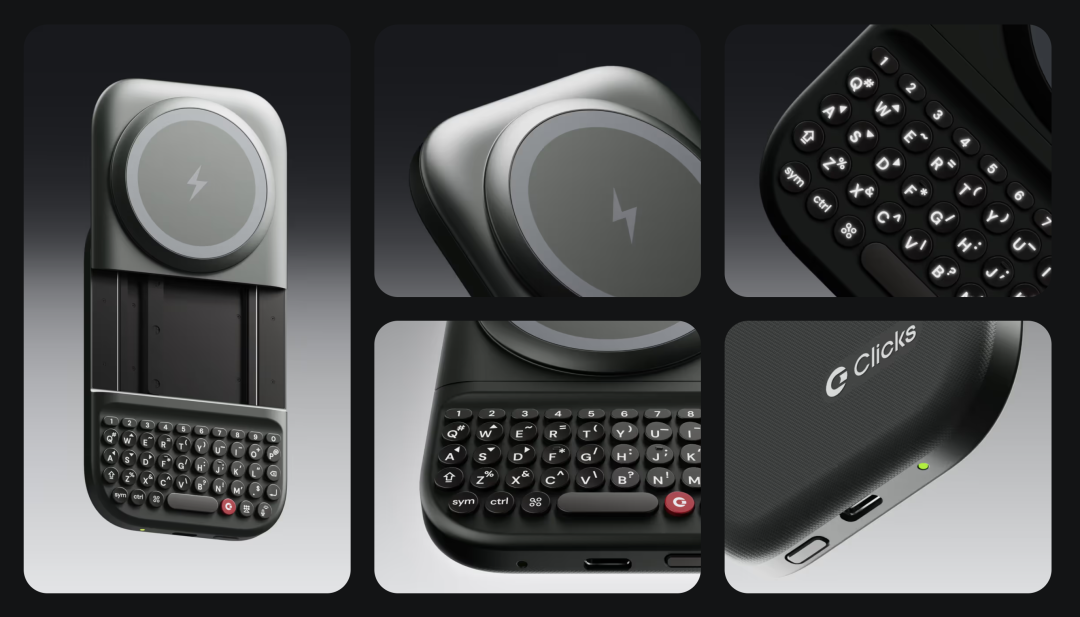 他们的主要成果,就是这个让黑莓老粉落泪的产品:Clicks Keyboard 键盘手机壳。