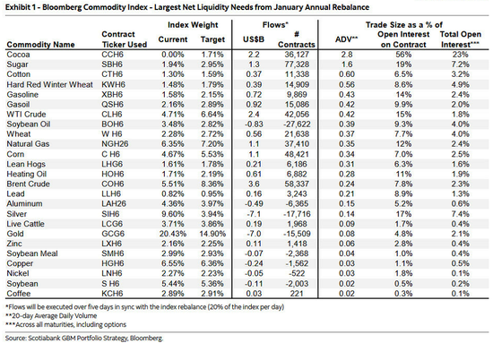 新年伊始,指数再平衡的资金流动如期而至。当前市场瞩目的焦点是彭博商品指数(BCOM)的调整,而今年的资金流动规模尤为庞大。