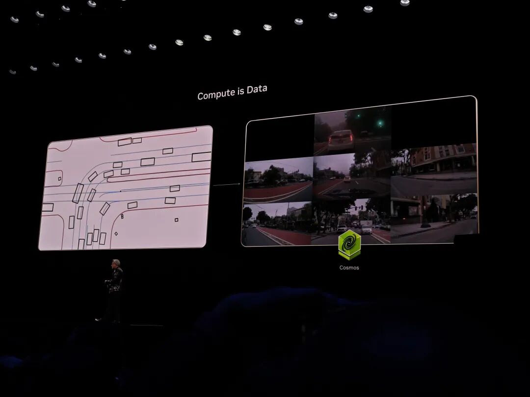 英伟达旗下的世界基础模型Cosmos会根据交通模拟器的信号,生成合理、运动上连贯的环绕视频,让AI学习其中真实世界的行为模式。