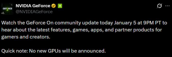 尽管,早在CES之前,英伟达官方就已经发布公告,表示没有新卡发布。