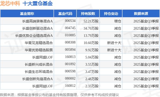 根据2025基金Q3季报公募基金重仓股数据,重仓该股的公募基金共13家,其中持有数量最多的公募基金为长盛基金的长盛高端装备混合A。长盛高端装备混合A目前规模为12.84亿元,最新净值5.042(1月9日),较上一交易日上涨1.49%,近一年上涨59.15%。该公募基金现任基金经理为郭堃。郭堃在任的基金产品包括:长盛同盛成长优选(LOF),管理时间为2020年5月27日至今,期间收益率为107.35%;长盛制造精选混合A,管理时间为2020年8月26日至今,期间收益率为43.97%;长盛同德主题混合,管理时间为2021年1月7日至今,期间收益率为9.53%;长盛优势企业精选混合A,管理时间为2021年2月2日至今,期间收益率为-0.75%。