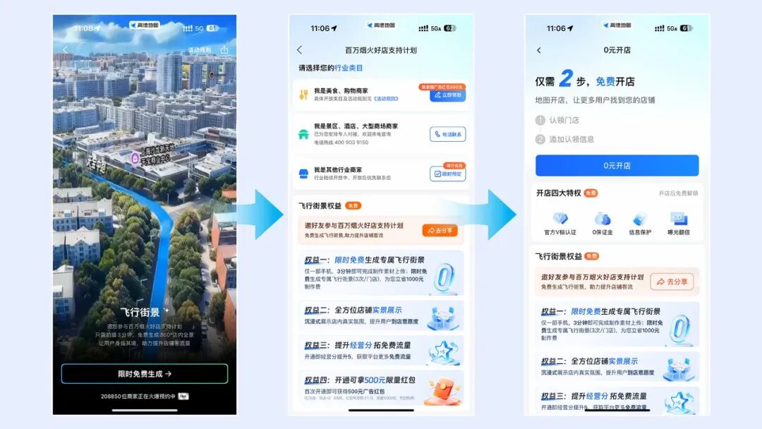 高德“飞行街景”上线48小时预约商家超35万。