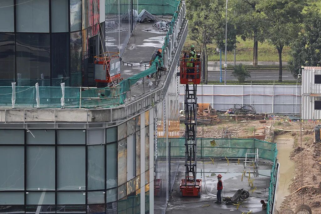 越南河内,工人在建筑工地施工