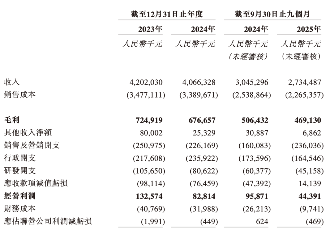 净利润的萎缩更为剧烈。即便不与2021年3.36亿元的峰值相比较,只看近年的数据,2023年到2024年,其净利润从8096万下滑到4335万,同比下滑46%。2024年前9个月到2025年前9个月,净利润从6055万下滑到3257万,同比下滑46.2%,连续两年腰斩。这还是行政开支、研发开支、财务成本压缩后的数据。