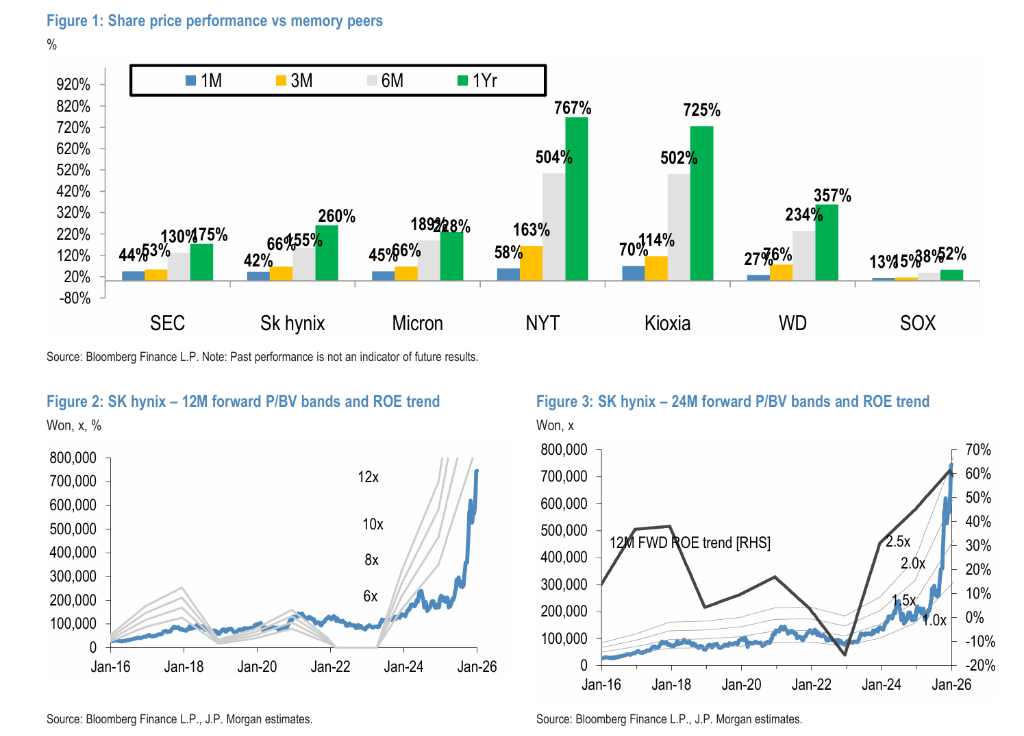 除了基本面的强劲表现,资本运作层面的新动态也成为市场焦点。据华尔街见闻此前文章,SK海力士在去年12月的一份监管文件中表示,公司正在"评估提升企业价值的各种措施,包括利用库存股在美国股市上市的可能性,但目前尚未最终确定"。摩根大通认为,ADR上市将是下一个关键事件催化剂,有望缩小其与美系同行的估值差距。