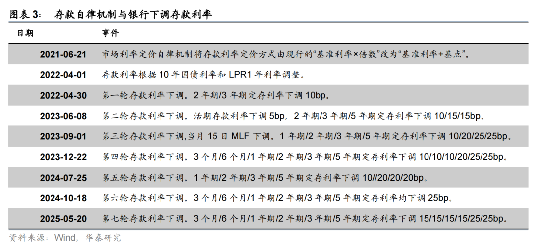 3)存款利率自律机制改革以来,共推动过七轮存款利率下调,一般是大行带头调整,小行跟随的模式。