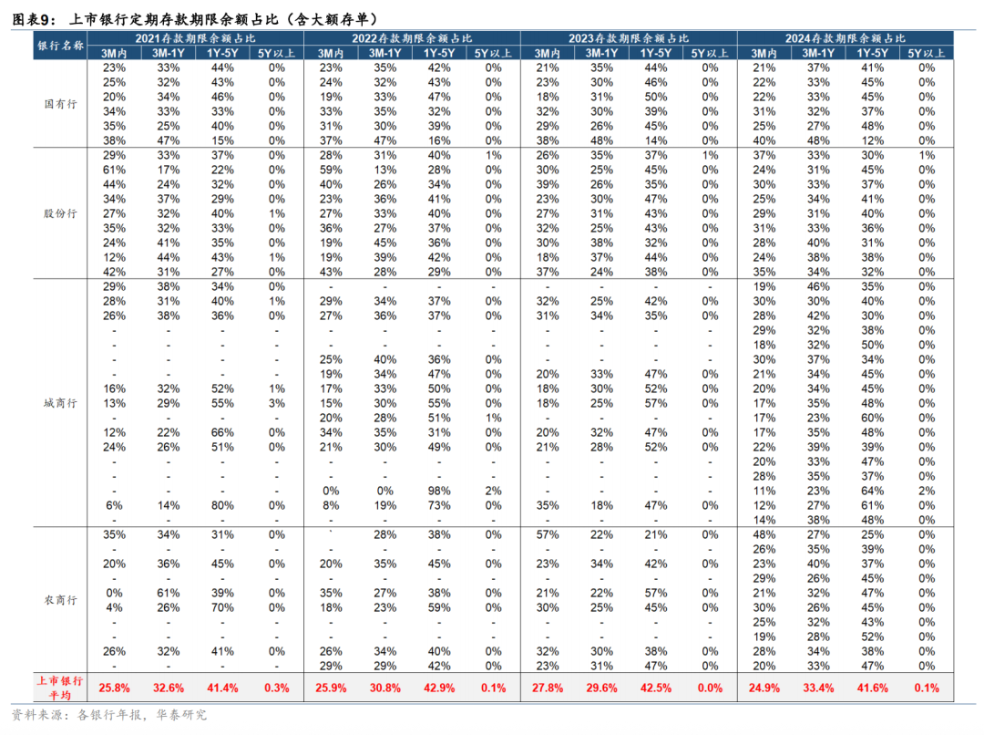 目前公开渠道尚未有现成的、针对全银行业的存款到期或存款新发数据,但上市银行年报多数会披露各期限存款余额(包含面向一般客户发行的大额存单),可据此做简单推算。有如下几个测算视角可借鉴:
