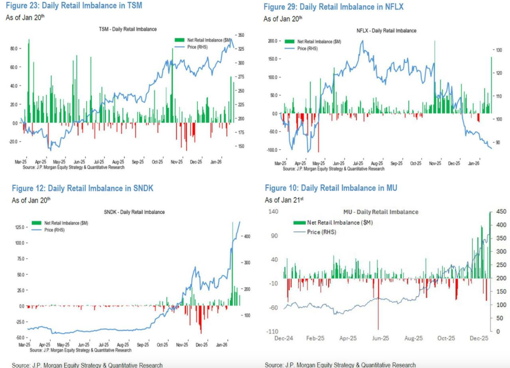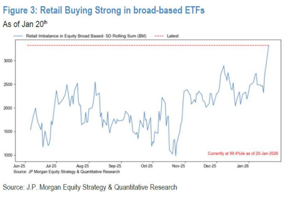 回溯更长时间周期,据摩根大通数据,在过去21个交易日内,散户累计净买入的总额首次超过了450亿美元这一历史关口。相比去年事件驱动的短期抄底,本轮买入更具持续性,显示散户情绪已从避险转向积极配置。