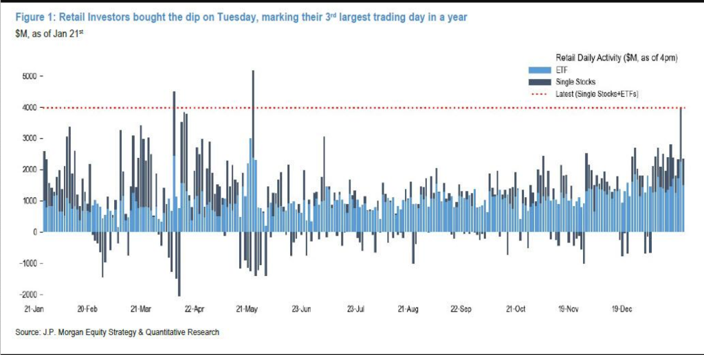当地时间周三,特朗普在达沃斯的发言提振了风险情绪,市场如散户预期地发生反转。特朗普出现了明显的立场调整,不仅放弃此前对格陵兰问题的关税威胁,也排除了使用武力的可能性。据新华社,美国总统特朗普21日在社交媒体发文称,他已经同北约秘书长吕特就未来达成有关格陵兰岛的协议制定了框架,因此不会实施原定于2月1日生效、对欧洲8国加征关税的措施。