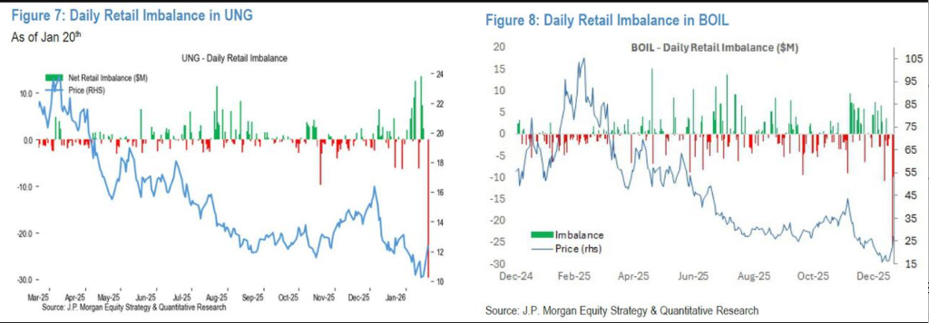 另一方面,受美国寒潮影响,天然气期货在两天内暴涨约50%,推动散户投资者加速从BOIL和UNG等相关ETF中获利了结。与贵金属的避险属性不同,加密货币ETF在2026年初呈现“反黄金”交易特征,同样出现资金外流,货币类ETF昨日仅处于第4百分位的较低活跃度。
