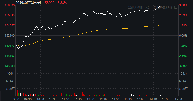 消息出炉之后,SK海力士、三星电子午后涨幅进一步扩大,其中SK海力士涨超8%,三星电子涨近4%。