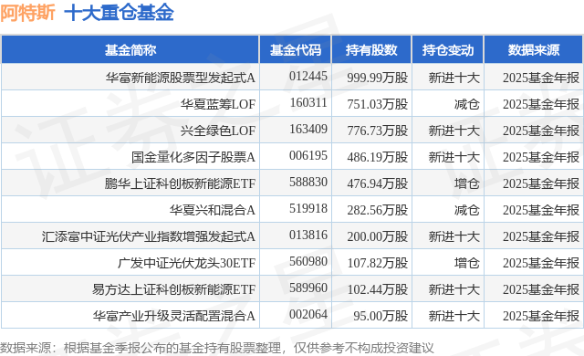 重仓阿特斯的前十大公募基金请见下表: