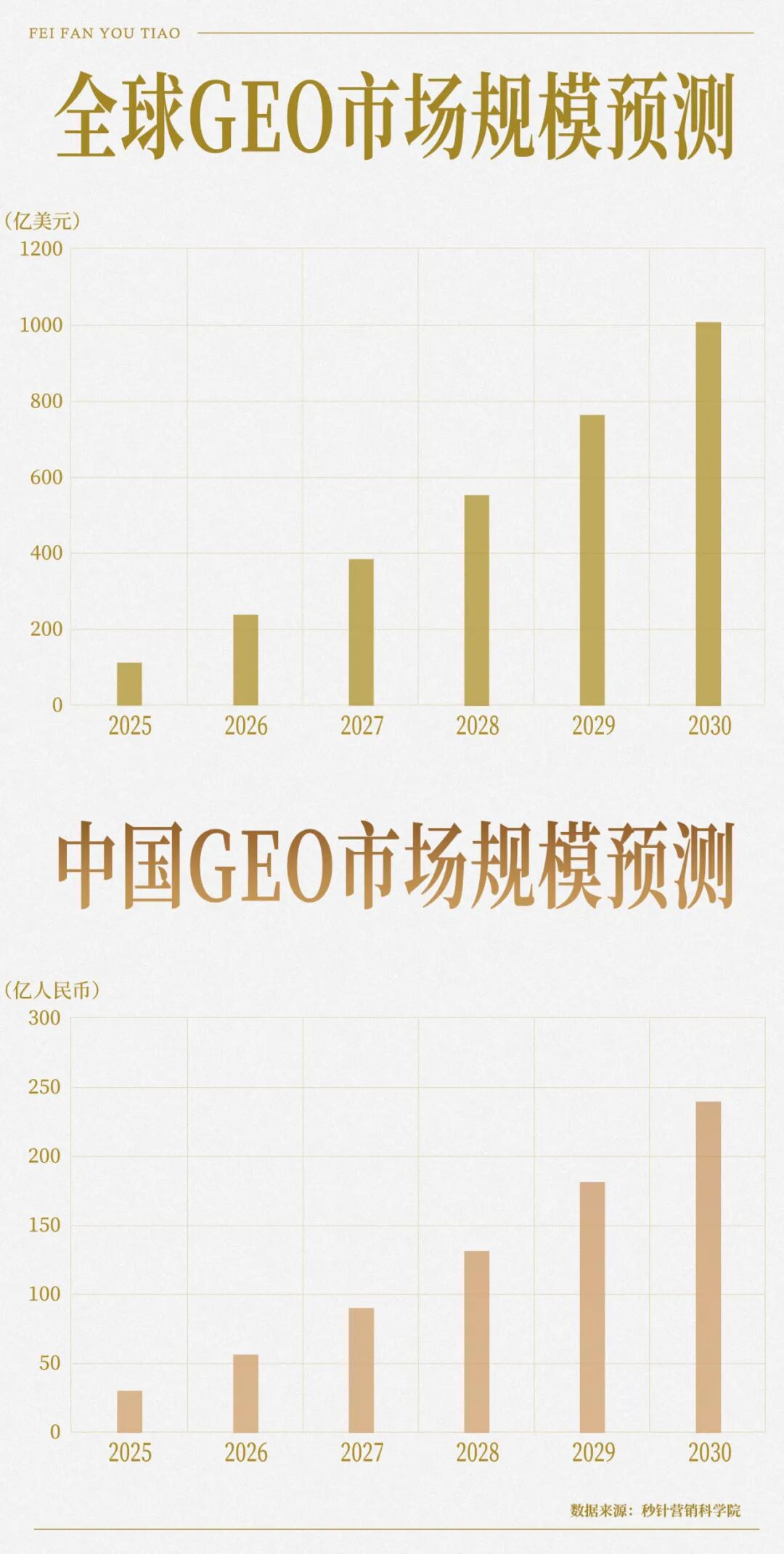 GEO给传媒公司带来了新的增量,预计到2030年,国内GEO市场规模将达到240亿元,放眼全球,GEO这块大蛋糕到2030年得有1007亿美元的规模。