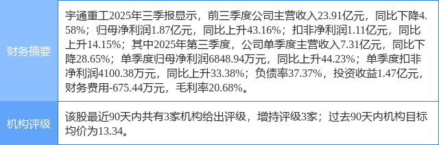 2025年10月31日,东吴证券研究员袁理,陈孜文发布了对宇通重工的研报《2025年三季报点评:剔除股权转让影响后归母同增104%,整车业务经营向好》,该研报对宇通重工给出“买入”评级。证券之星数据中心根据近三年发布的研报数据计算,该研报作者对此股的盈利预测准确度为63.82%。