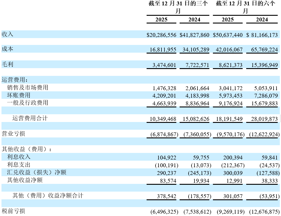 2026财年第二季度净亏损为660万美元,折合每股亏损0.12美元;而2025财年第二季度净亏损为800万美元,折合每股亏损0.14美元。