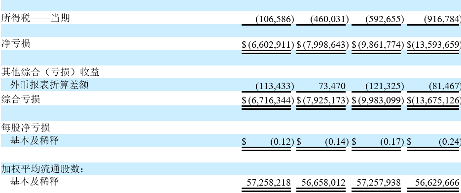 未审计合并运营和综合损失表(以美元为单位,除股数和每股数据外)