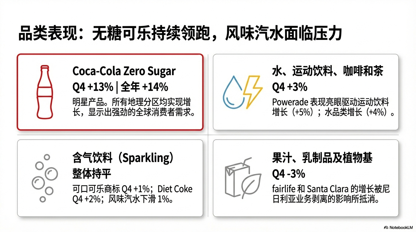 回归到2025年第四季度的具体表现,可口可乐在核心业务上依然展现了韧性,尤其是“无糖化”策略成效显著: