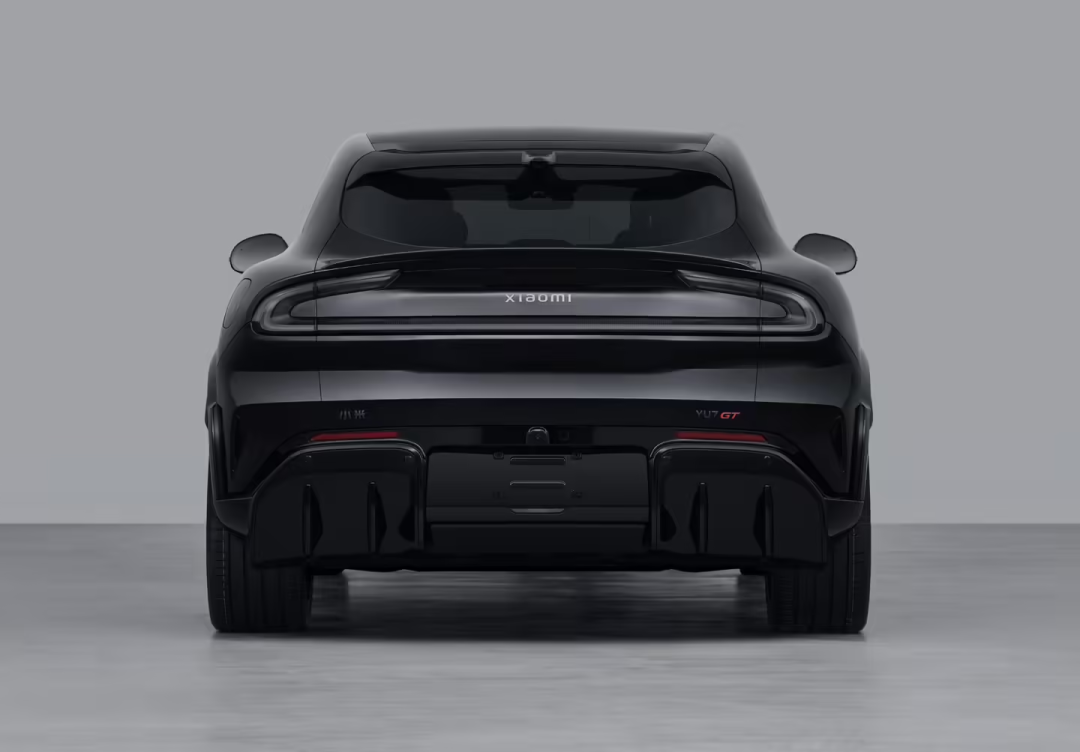从车尾看,YU7 GT 基本没啥变化,同样的鸭尾和后扰流板,主要区别是在后保上整了一个立刀式扩散器,让屁股看着更运动,不那么肥厚。em...但我估计它没啥导流扩散的作用。