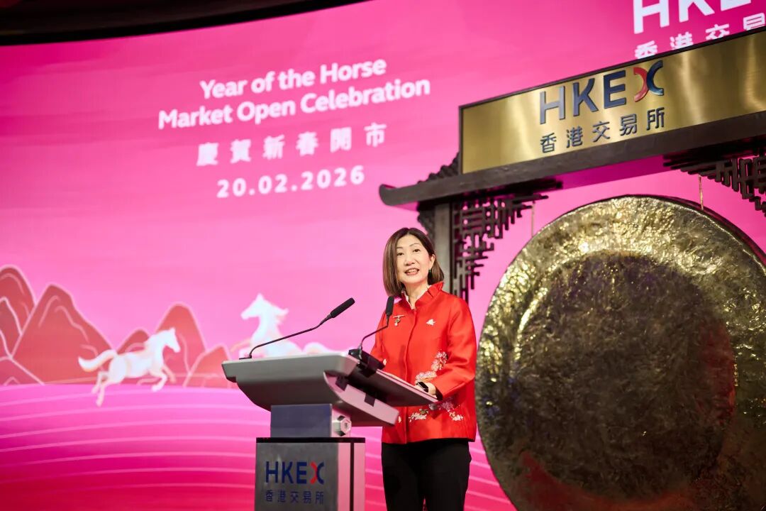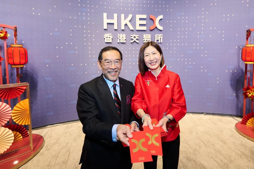 恭喜发财!香港交易所今早在香港金融大会堂进行热闹的新春开市仪式,一同迎接马年首个交易日。