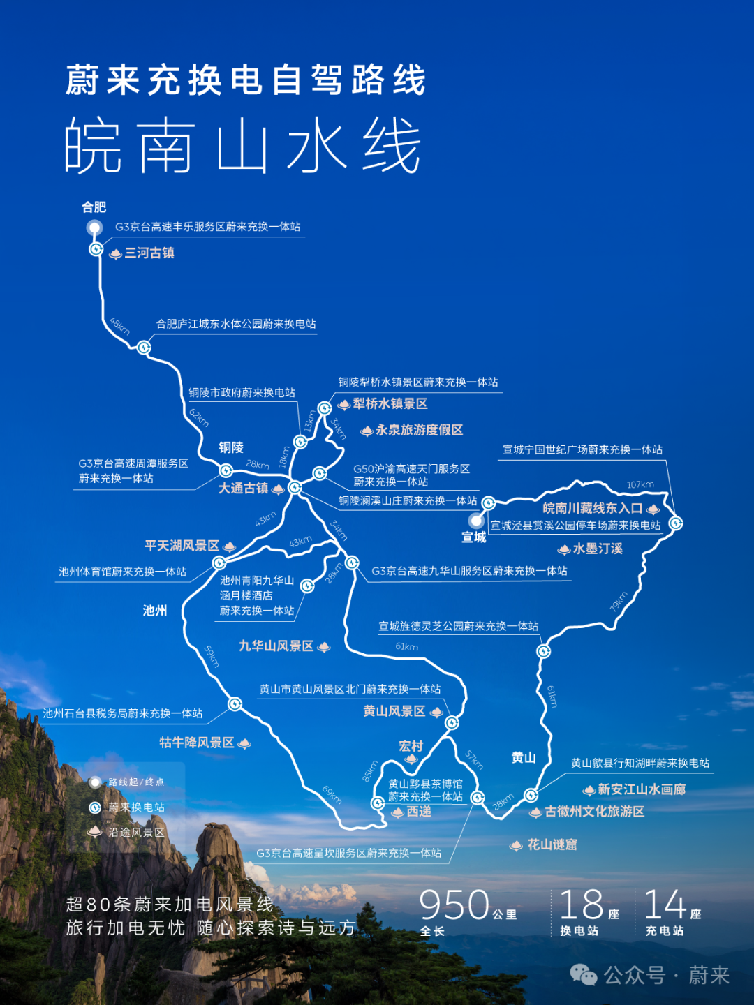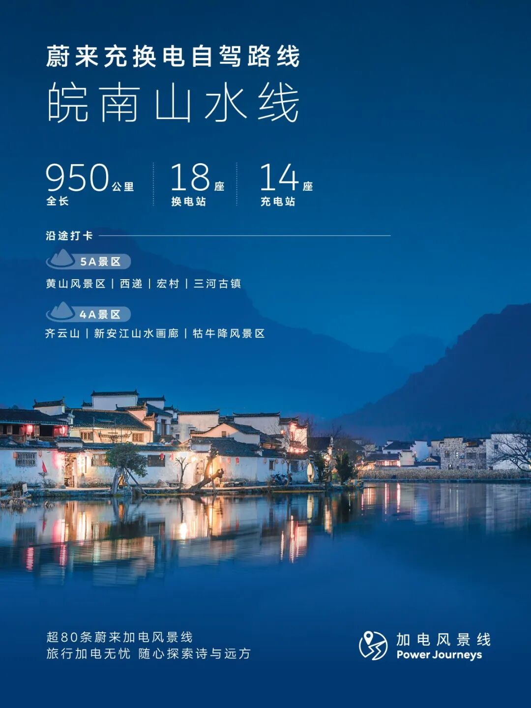 春风入皖南,一路皆诗画。这条贯穿皖南的蔚来“加电风景线”,全程950km,串联合肥、铜陵、池州、黄山、宣城五大名城,沿途布局18座换电站、14座充电站。古村、花海、湖光、山色一站式打卡,即刻出发,奔赴最美皖南春光!✨4-5日春季精华段推荐路线:合肥→铜陵→池州→黄山→宣城体验:山水漫游+古村寻韵+峰林揽秀+人文打卡🏮合肥—铜陵:从都市烟火步入皖江山水秘境。打卡合肥三河古镇,青石板路、古桥流水间藏着春日生机,逛古街、品特色美食,感受水乡惬意;驱车至铜陵大通古镇,漫步澜溪老街,看江雾渔船,品尝江鲜美味,读懂皖江人文底蕴。⛰️池州—黄山:从山水秘境深入到徽派核心韵味。池州牯牛降风景区青山碧水、草木萌发,沉浸式感受原生态治愈之美;前往黄山,漫游太平湖赏湖光山色,再打卡西递,看粉墙黛瓦映着油菜花海,感受徽派古村的春日诗意。🏯黄山—宣城:从徽州核心走向诗意宣城。登顶黄山赏云海山花后,驱车前往宣城,访敬亭山“相看两不厌”的诗境,探绩溪龙川古祠的匠心,或于泾县桃花潭畔追寻李白足迹,在文房四宝之乡为旅程画上诗意句点。📝“实用小贴士”🌱 皖南春日温差较大,山区多雨雾,建议携带防风外套、雨具及舒适徒步鞋。临水临崖路段,尤其太平湖、牯牛降周边道路,需控制车速、注意会车。蔚来、乐道车主,可灵活利用车载空间,随行备些时令水果、茶饮,停靠古村或观景台时,随时享受野餐般的闲适时光。“加电风景线”是蔚来在2020年发起的能源布局项目:在基础设施不完善,但极具向往感的目的地部署充换电设施,满足车主加电需求,让油车能去的地方电车也能去,助力大家尽情探索旅程的旖旎风光和灿烂文明。截至目前,我们已经贯通了超80条蔚来“加电风景线”。#蔚来 #蔚来换电去哪都方便 #自驾旅行首选换电 #蔚来全新ES8 #ET5一触即发 #ET5T一往无前 #ES6生机盎然 #EC6灵感激发 #蔚来ET9敢想有为 点击即刻预约试驾蔚来全系车型