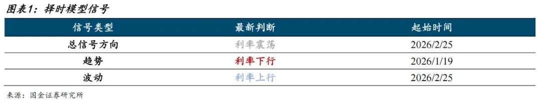 模型信号解读:波动信号由2026年2月25日开始看利率上行,趋势信号由2026年1月19日开始看利率下行,模型总体看利率震荡。本信号为量化模型客观运行结果,谨供参考。