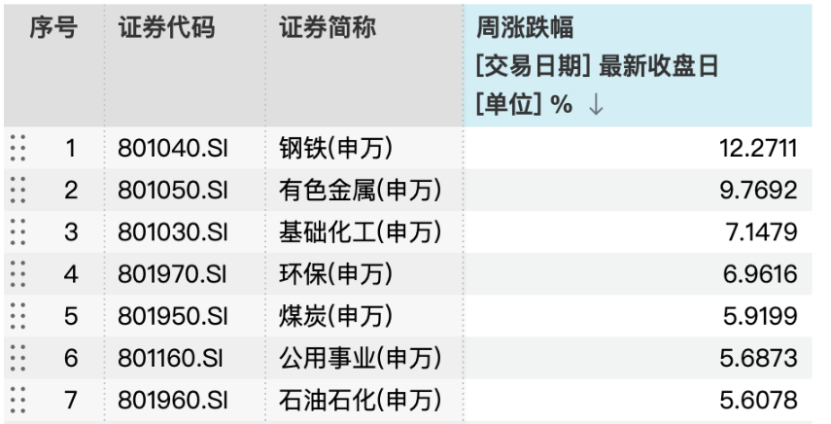 过去一周,节后复工与供给侧约束叠加“反内卷/涨价”叙事升温,A股资源品链条领涨。申万行业指数显示,钢铁、有色分别大涨12.27%和9.77%,基础化工、环保涨幅也达到了7.15%和6.96%,煤炭、公共事业、石油石化涨幅亦超过5%。整体而言,市场风格正逐步向上游周期切换,油气、磷化工、贵金属、稀土等产品涨价的方向明显上行。
